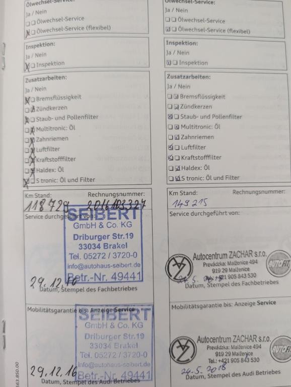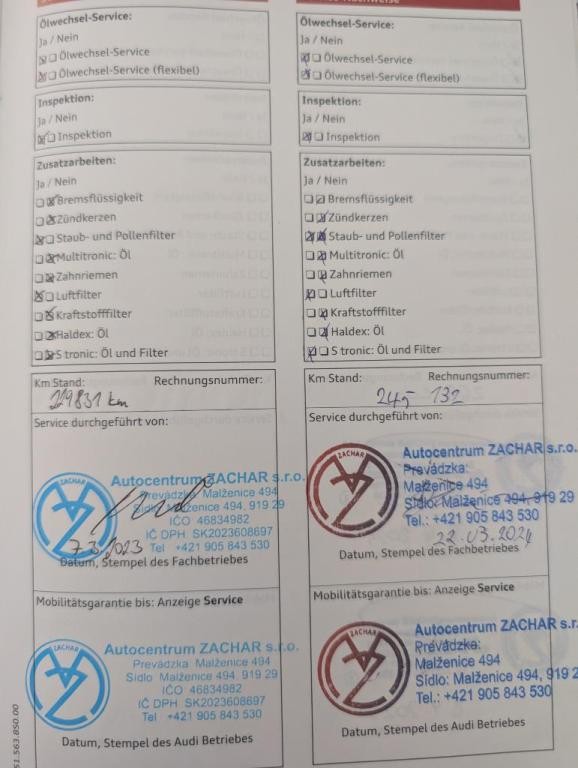 - Úplná servisná história