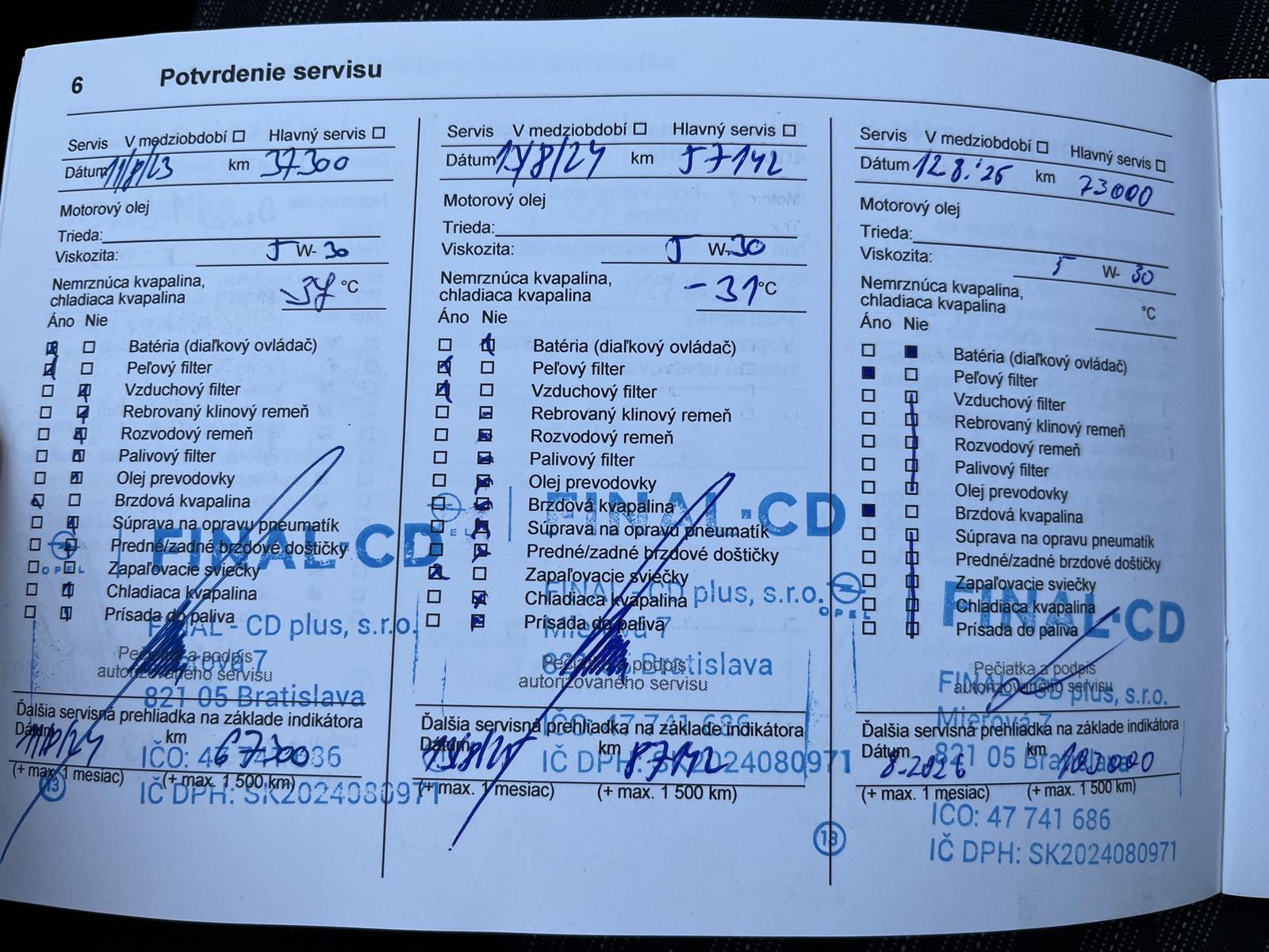 - Servisná knižka