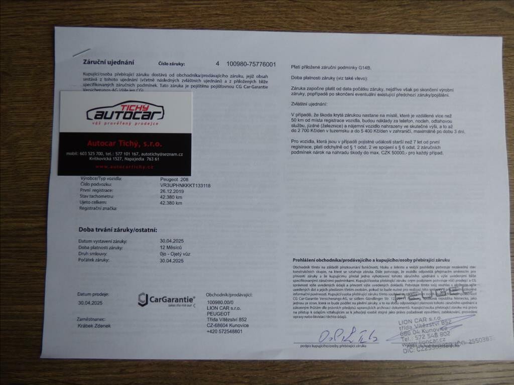 - Servisná knížka neuvedené