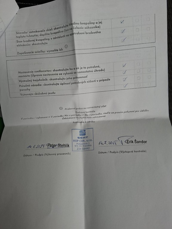- Servisná knižka