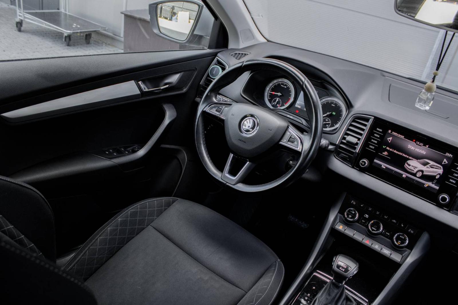 Škoda Karoq 2.0 TDI 110 kW DSG 4x4 z roku 2019, ideálna kombinácia silného dieselového motora s automatickou DSG prevodovkou a pohonom všetkých kolies. Auto bolo dovezené z Rakúska, má druhého majiteľa, kilometre sú pravé a ľahko overiteľné. Vozidlo nikdy nebolo havarované ani búrané, je maximálne zachovalé, bez škrabancov a kozmetických chýb. Auto je čerstvo po výmene oleja v motore s filtrami a tiež po výmene oleja v prevodovke. Výbava zahŕňa napríklad multifunkčný volant, tempomat, Front Assist, navigáciu, Apple CarPlay a Android Auto, radenie pod volantom, parkovacie senzory vzadu a hliníkové disky. Vozidlo sa predáva bez sezónneho prezutia a bez možnosti odpočtu DPH. Auto prešlo kontrolou poisťovacích záznamov, exekučných záznamov, kontrolou merania laku a dokladov. V prípade záujmu Vám pripravíme ponuku financovania na mieru presne podľa Vašich požiadaviek. Výhodné, rýchle a jednoduché schválenie. MOŽNOSŤ PREDĹŽENIA ZÁRUKY NA 12-36 MESIACOV. Vozidlo sa nachádza v okolí Nitry. Viac informácií Vám poskytneme na telefónnom čísle 0911 531 741.