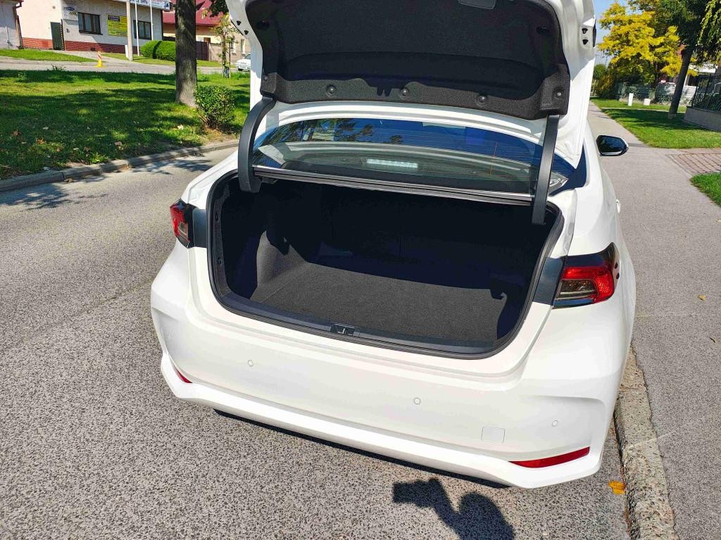 Airbag 3X, Výškovo a pozdĺžne nastaviteľný volant, 6 reproduktorov, Mriežka chladiča chrómovaná, Vonkajšie spätné zrkadlá vo farbe karosérie, Zadná lak ová opierka s držiakmi na poháre, Predná lak ová opierka, Opierky hlavy na zadných sedadlách, Asistent rozjazdu do kopca (HAC), Indikácia zapnutia bezpečnostných pásov, Automatické diaľkové svetlá (AHB), Vrecká na zadnej strane sedadiel vodiča a spolujazdca, Trojramenný kožený volant, Halogénové predné svetlomety, Automatický obmedzovač rýchlosti (ASL), Strešná anténa v tvare žraločej plutvy, Akustické čelné sklo, Čelné a bočné airbagy pre vodiča a predného spolujazdca, Elektronická parkovacia brzda (EHB), Elektricky nastaviteľné vonkajšie spätné zrkadlá, Výduchy klimatizácie v druhom rade sedadiel, Predné svetlomety projektorové, Systém automatického núdzového volania (eCall), Detekcia únavy vodiča (SWS), Elektricky nastaviteľné a vyhrievané vonkajšie spätné zrkadlá, Podpora rozhlasového vysielania v digitálnej technológii (DAB), Inteligentný adaptívny tempomat (IACC) s funkciou Stop & Go, Asistenčné systémy riadenia a brzdenia (ABS, EBD, VSC, TRC, EPS, BA), Predkolízny bezpečnostný systém (PCS) s detekciou chodcov cez deň a v noci a cyklistov cez deň, Predná lak ová opierka látková, Systém núdzového zastavenia (EDS), Akustický výstražný systém (AVAS), Diaľkové odomykanie a zamykanie centrálneho zamykania cez aplikáciu MyT, Online aktualizácie jazdných asistentov Toyota T-MATE, Automatická dvojzónová klíma