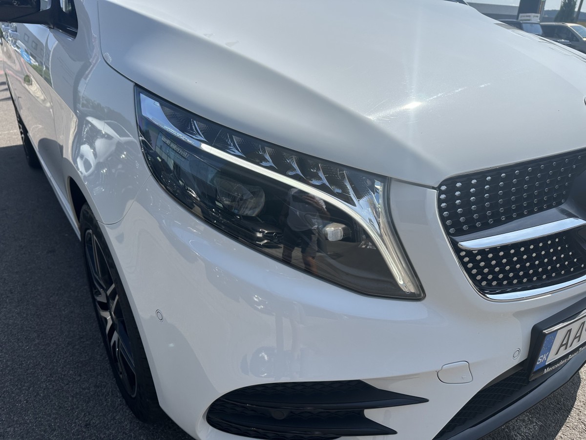 AD5A Konečný prevod i = 2,733 BB7 CO2 – Optimalizovaný brzdový systém C74 Prahové lišty Mercedes-Benz v oblasti posuv.dverí CL1 Stĺpik riadenia výškovo a pozdĺžne nastaviteľný CL3 Kožený volant, koža Nappa CL4 Multifunkčný volant s palubným počítačom CM2 Nárazník a diely vo farbe laku CU4 Aerodynamický balík E07 Asistent rozjazdu do kopca E1D Digitálne rádio (DAB) E1T Touchpad E34 Batéria pre štartovanie E6M Multimediálny systém MBUX Mid E7B Pred-inštalácia pre navigáciu ED4 Štartovacia batéria 12V/95Ah EL9 2-pásmové reproduktory vpredu a vzadu ES2 12V zásuvka v nákladnom priestore EW6 Pred-inštalácia pre služby poskytované na diaľku EY5 Systém núdzového volania Mercedes-Benz EY6 Manažment porúch F66 Príručná odkladacia skrinka, uzamykateľná F69 Vonk.spätné zrkadlá, vyhrievané, el.nastaviteľné FC1 Elektronický kľúč s chrómovým vzhľadom FS5 Slnečné clony s kozmetickým zrkadlom, osvetlené BA3 Aktívny brzdový asistent BH1 Funkcia HOLD BS1 Nápis Mercedes-Benz na brzdových strmeňoch C1L Predný nárazník AMG s čiernymi prvkami CF8 Športový podvozok CN1 Exteriérové prahy D14 Eloxovaný pozdĺžny držiak na strešný nosič E1E Navigácia E1F Dotykový displej s uhlopriečkou 26 cm (10.25“) E4S Balík pre integráciu chytrého telefónu ES3 Zásuvky 12V pre zadné rady sedadiel vpravo a vľavo ES9 Sada káblov pre mediálne rozhranie ET4 Tempomat s reguláciou odstupu DISTRONIC PLUS EX9 Aktualizácie máp na 3 roky zadarmo EY2 MBConnect - dopravné dáta v reálnom čase EZ6 Parkovací balík s 360° kamerou EZ8 PARKTRONIC F3S Vonk. spätné zrkadlá, čierny lak F65 Vonk.spätné zrkadlá s automatickým sklápaním F72 Vonkajšie a vnút.spätné zrkadlo autom.stlmiteľné FB1 Ozdobné prvky, vzhľad uhlíkového vlákna FB4 AMG spojler na zadných dverách FG0 Stredová konzola s posuvnou roletkou FG9 2 odnímateľné držiaky na poháre