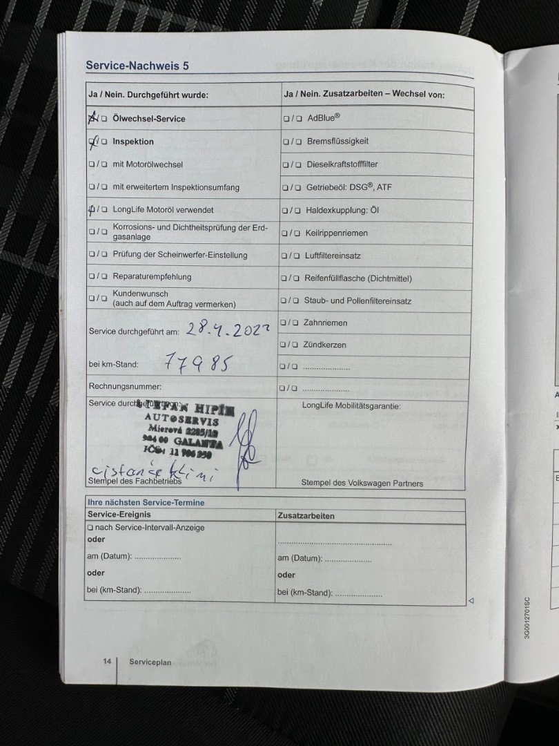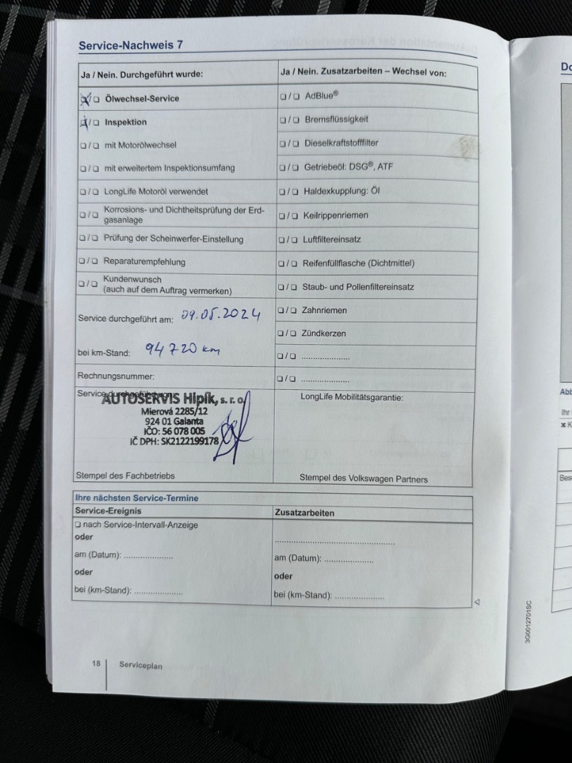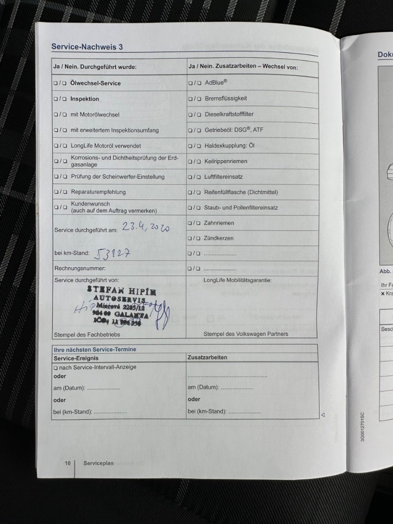 - Servisná knižka
